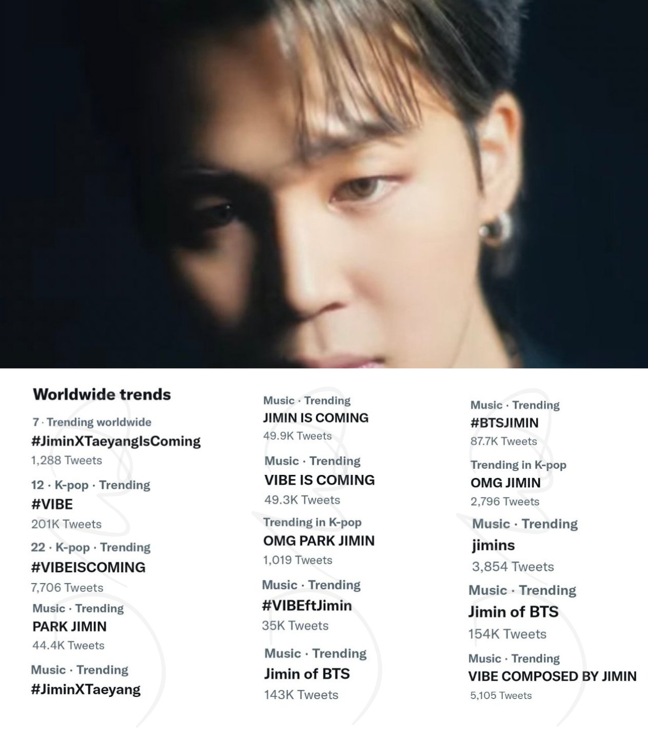 Jimin Data On Twitter 15 Keywords Trended Simultaneously Following The Release Of Vibe Mv Teaser Main Character Vibes Only Https T Co Khjp0dwvbe Twitter